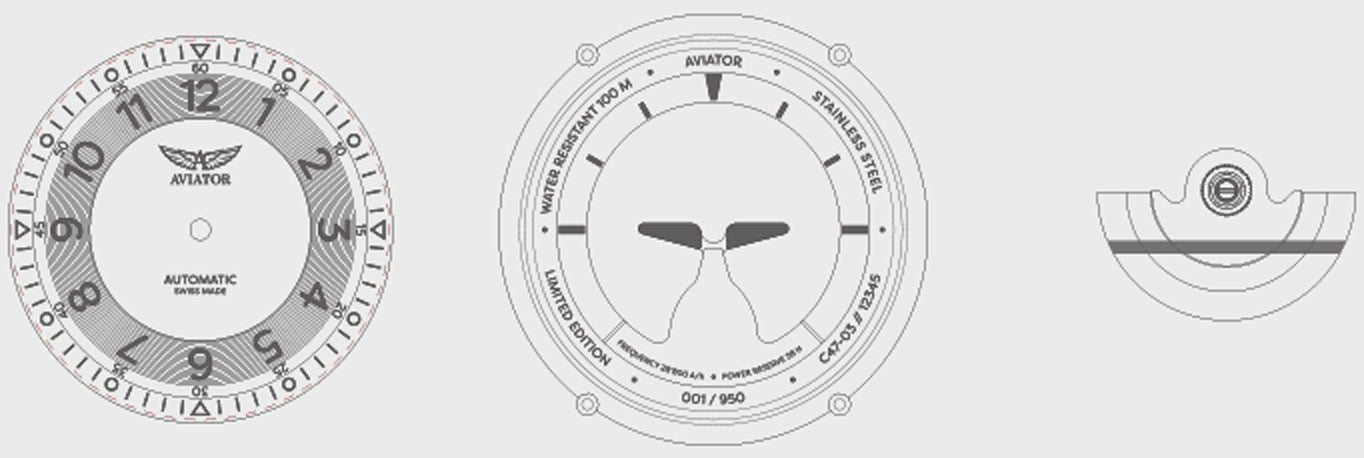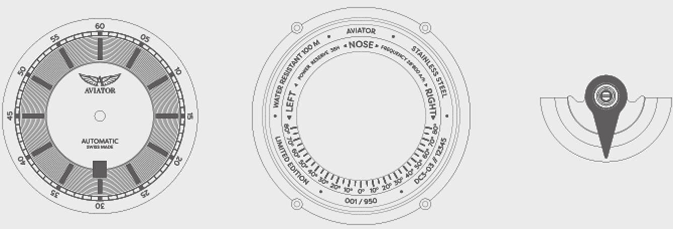すべてのAVIATORケースは、プロのパイロットが機内で直面しうる過酷な条件に耐えられるように設計・開発されています。各ケースはプレミアム316L耐磁ステンレス鋼合金で作られており、100Mの防水性を備えています。ケースは人間工学に基づき厳しい旅にも耐えるようにデザインされています。スタンピング、ランシング、ブランキングや高精度なマシンピアッシングまで、40以上の工程を経ています。高級感のある繊細な仕上げがすべてのケースに施されています。