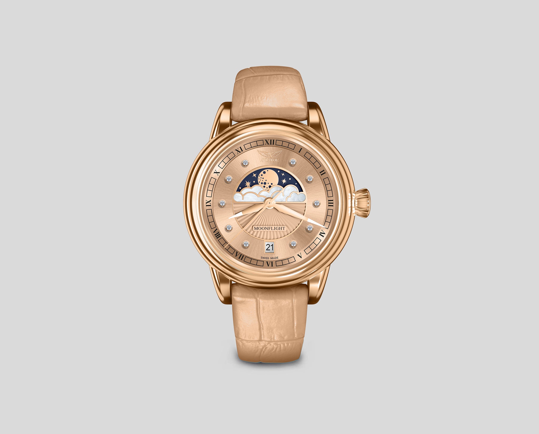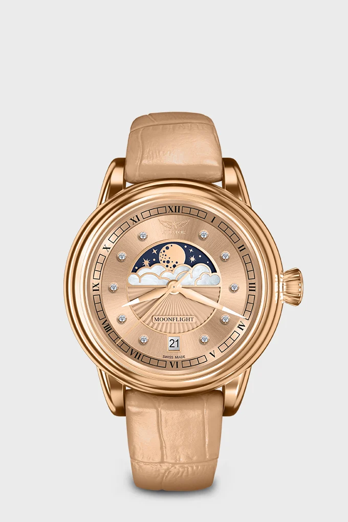 ラグジュアリーコレクション「MoonFlight Diamonds Edition(ムーンフライト ダイヤモンズ エディション)」が登場。1930年代の航空黄金期を彩ったダグラスDC-3旅客機とアールデコの華やかさを現代に再解釈し、月と雲、そしてダイヤモンドの輝きで、腕元に“空のエレガンス”を宿します。