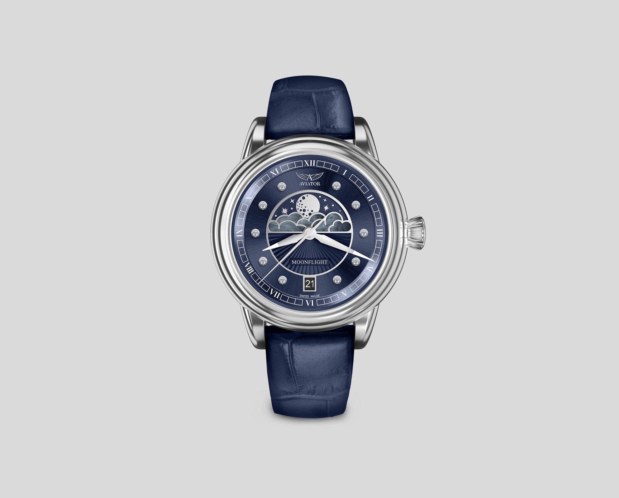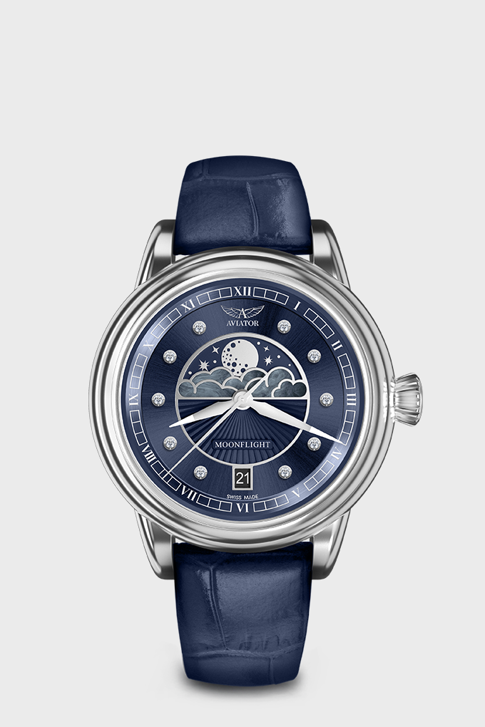 ブルームーンに入ると、夜空に別の色合いが見えます。月は、パステルピンク、淡いオレンジ、鮮やかな赤、明るい黄色の範囲で表示されます。その多彩な美しさを祝うために、AVIATOR MoonFlightは、月の本物のムーンロックグレーからヴィンテージの虹色を強調し、ピンクからムーンライトジェイド、ベージュシャンパン、ローズトープ、インペリアルジェイドのヴィンテージカラーパレットまでさまざまな色調で遊んでいます。