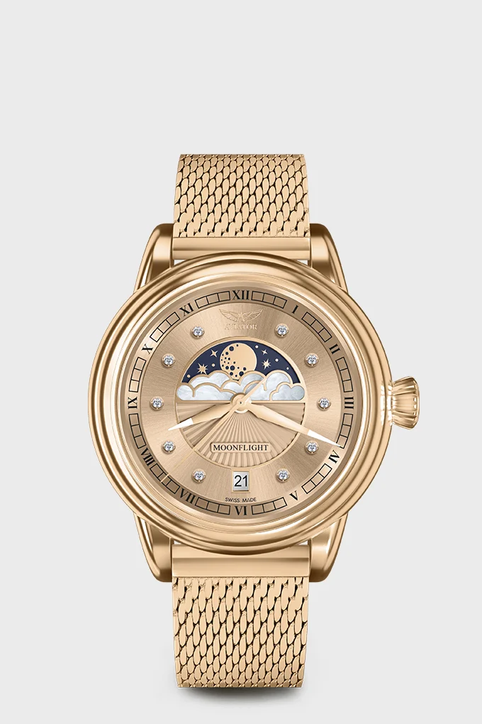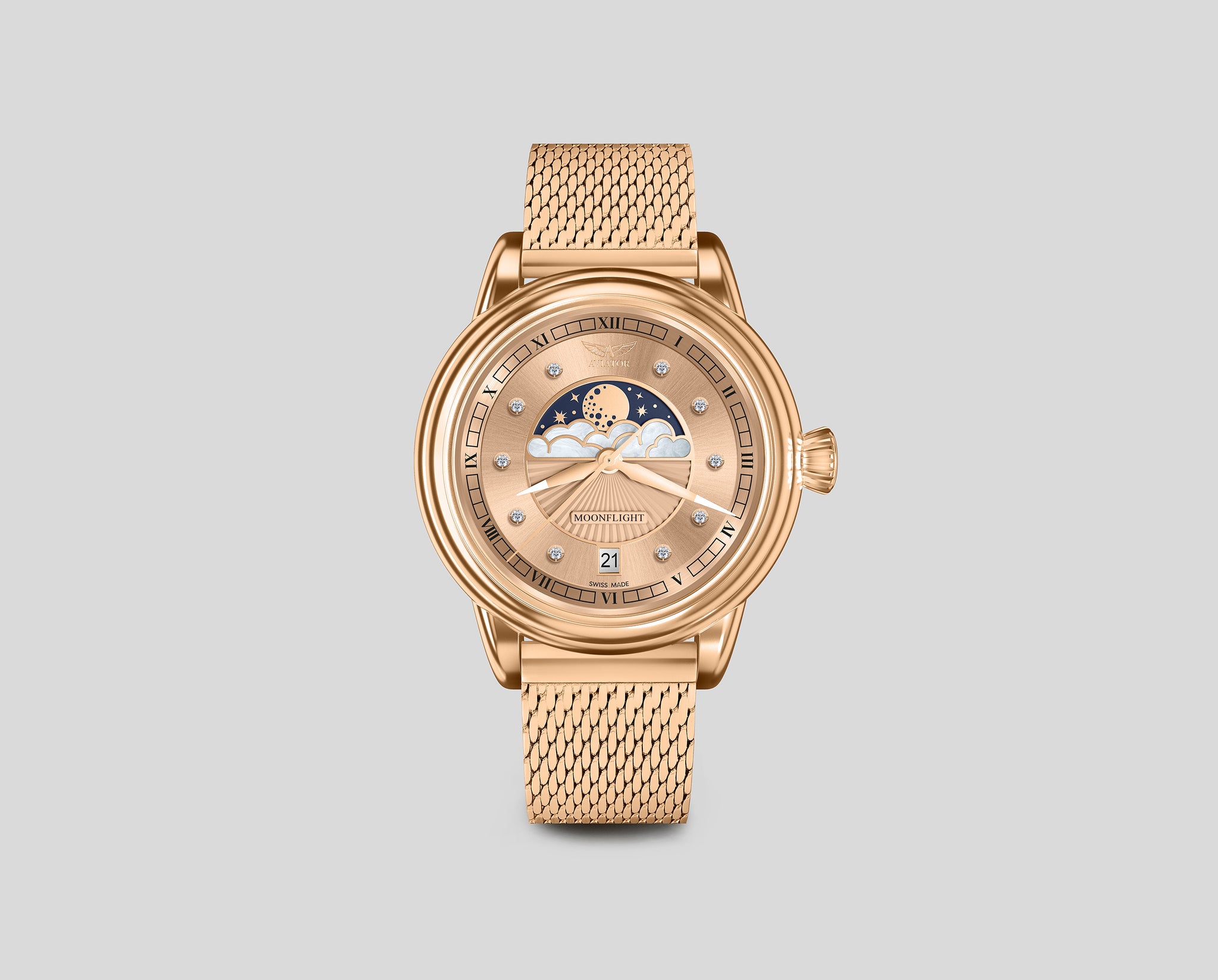 ラグジュアリーコレクション「MoonFlight Diamonds Edition(ムーンフライト ダイヤモンズ エディション)」が登場。1930年代の航空黄金期を彩ったダグラスDC-3旅客機とアールデコの華やかさを現代に再解釈し、月と雲、そしてダイヤモンドの輝きで、腕元に“空のエレガンス”を宿します。