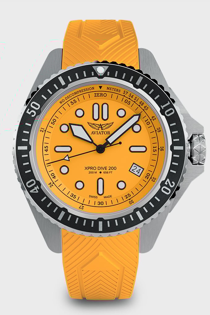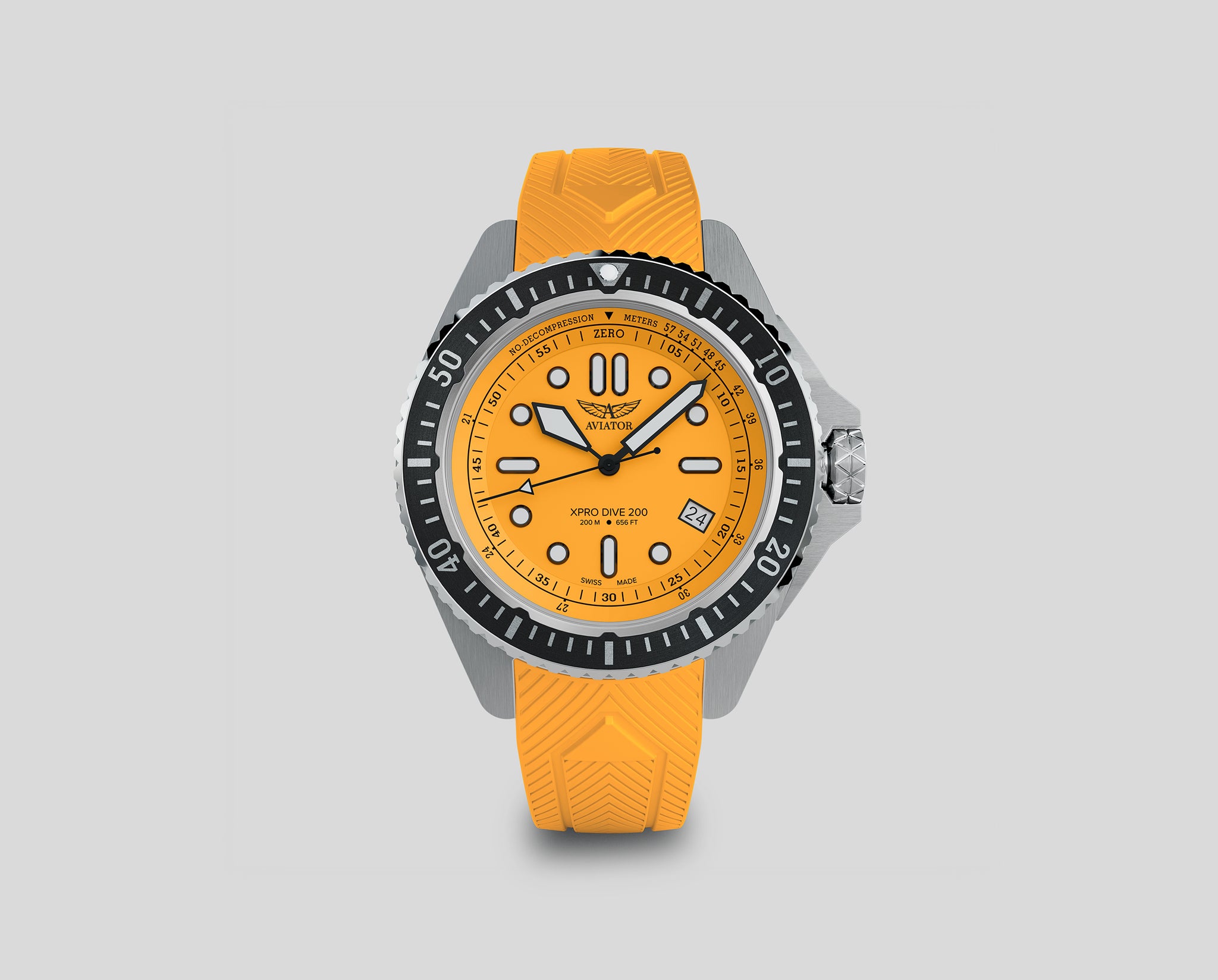 「XPRO DIVE 200」は、ブランド初の本格ダイバーズシリーズであり、海と空をつなぐ”というAVIATORの新たな挑戦を象徴するモデルです。