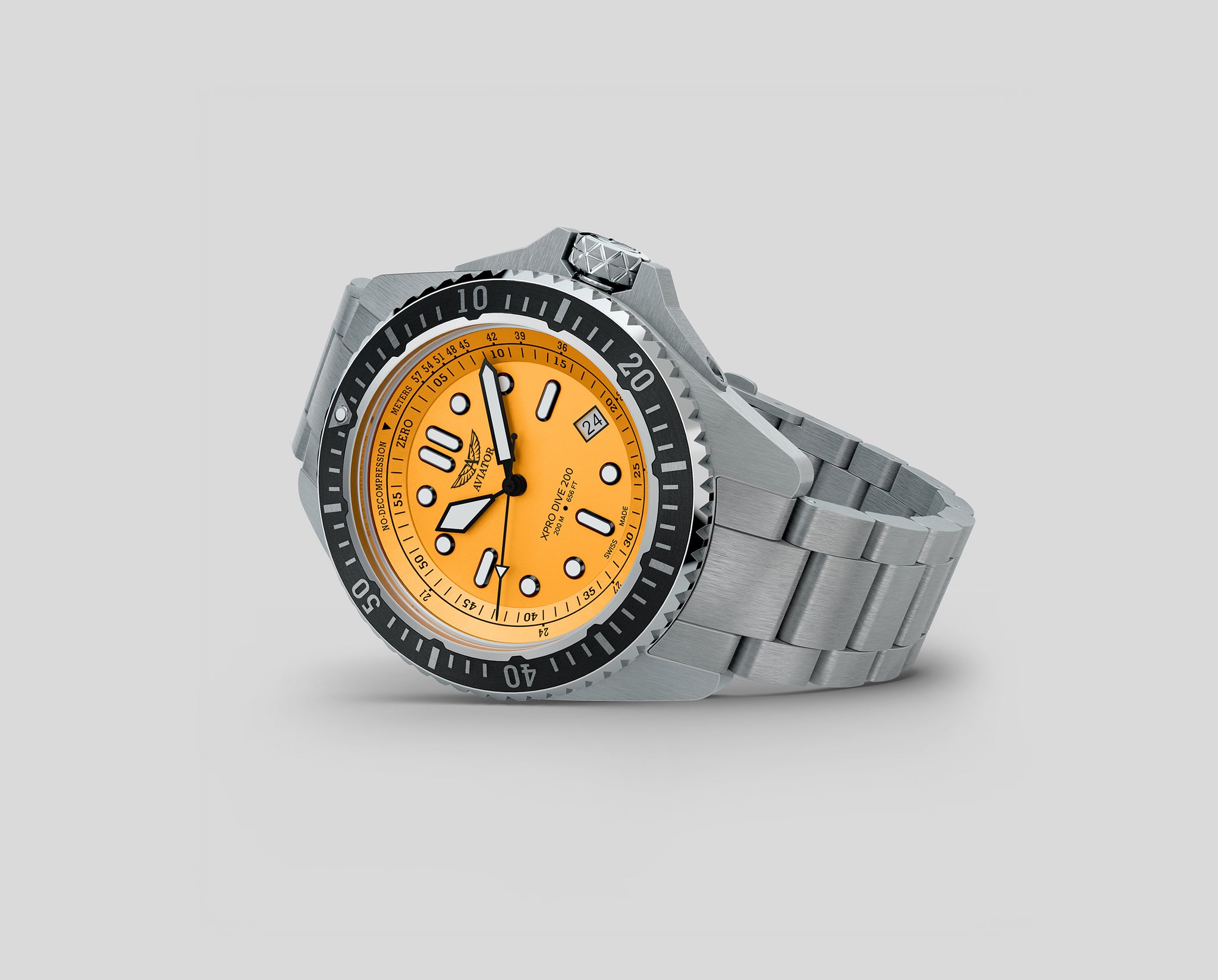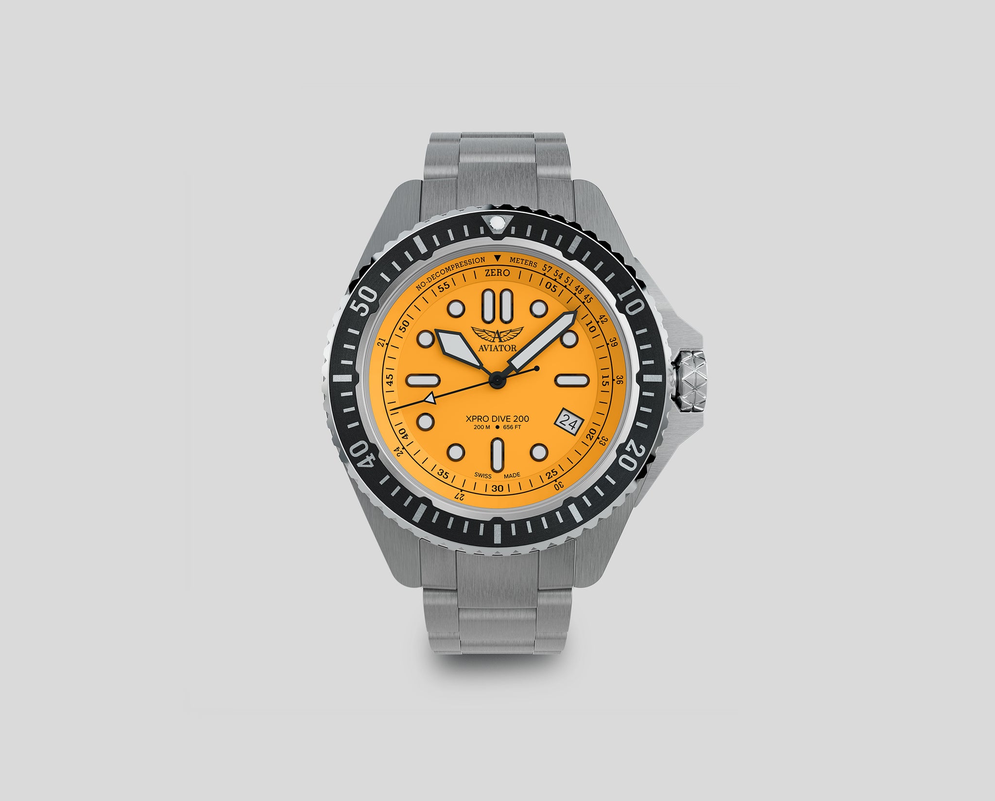 「XPRO DIVE 200」は、ブランド初の本格ダイバーズシリーズであり、海と空をつなぐ”というAVIATORの新たな挑戦を象徴するモデルです。