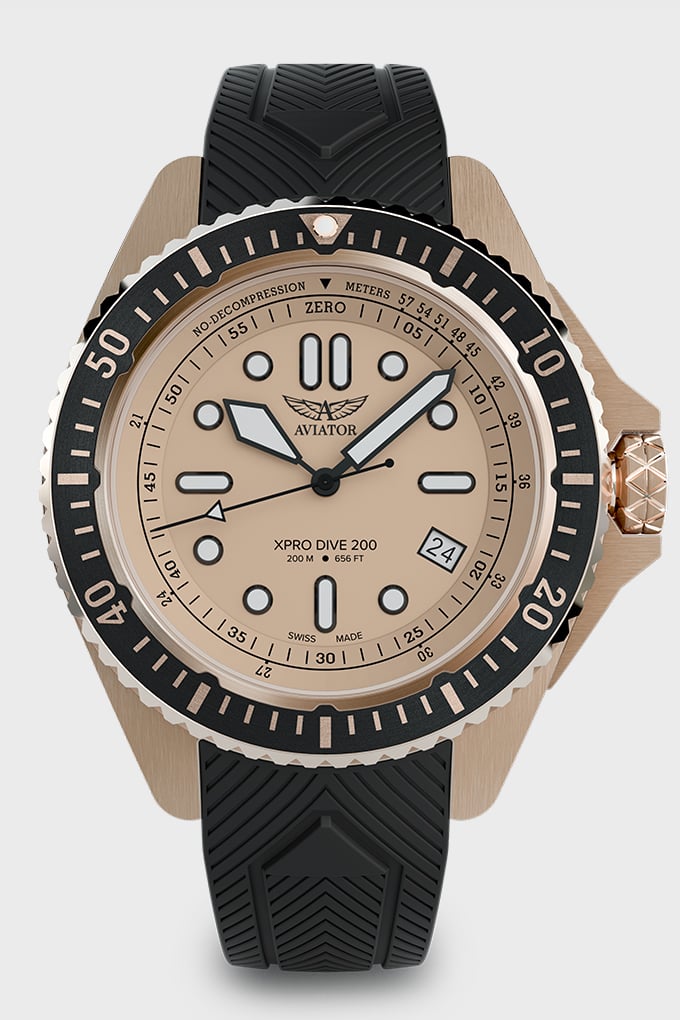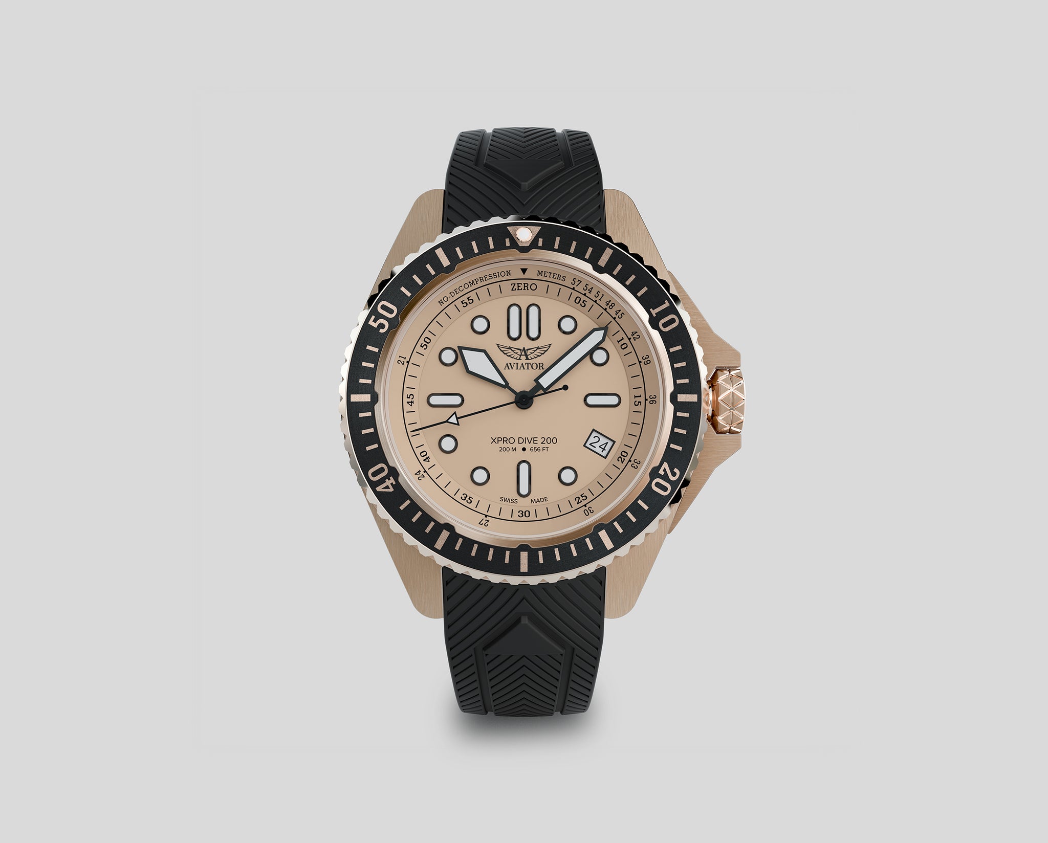 「XPRO DIVE 200」は、ブランド初の本格ダイバーズシリーズであり、海と空をつなぐ”というAVIATORの新たな挑戦を象徴するモデルです。